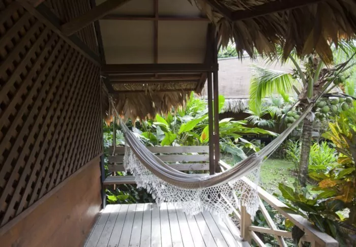 De acht aangename bungalows staan op kleine heuvels in het midden van het heuvelachtige landschap van het hotel en bieden plaats aan maximaal 4 personen. Ze hebben allemaal plafondventilatoren, een kluis, klamboes boven de bedden en een eigen badkamer met haardrogers en toiletartikelen. Elke bungalow heeft ook een veranda met een paar hangmatten waar je kunt ontspannen na een dag vol actie en kunt genieten van de schilderachtige omgeving. Je kunt zelfs het geluk hebben dat je papegaaien, toekans, kolibries of andere exotische vogels voorbij ziet vliegen.