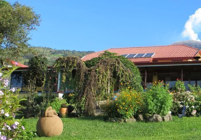 Er is ook een zwembad dat is gevuld met natuurlijk bronwater van de vulkaan. Er zijn 54 kamers, allemaal met een kleine veranda waarop je kunt genieten van het uitzicht op de vulkanen en de haciënda. Alle kamers zijn voorzien van airconditioning, kluis en tv.