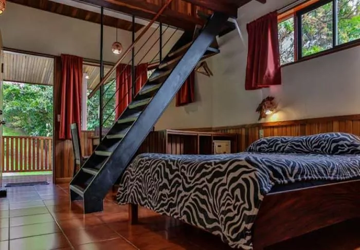 De lodge bestaat uit houten hutten in een rustieke stijl die bij de plaatselijke natuur past. Alle hutten hebben een eigen badkamer en een tv. Ze hebben allemaal hun eigen balkon, wat de ideale plek is om te genieten van een rustig moment met een heerlijk kopje Costa Ricaanse koffie en een boek met uitzicht op de wilde natuur van de jungle.