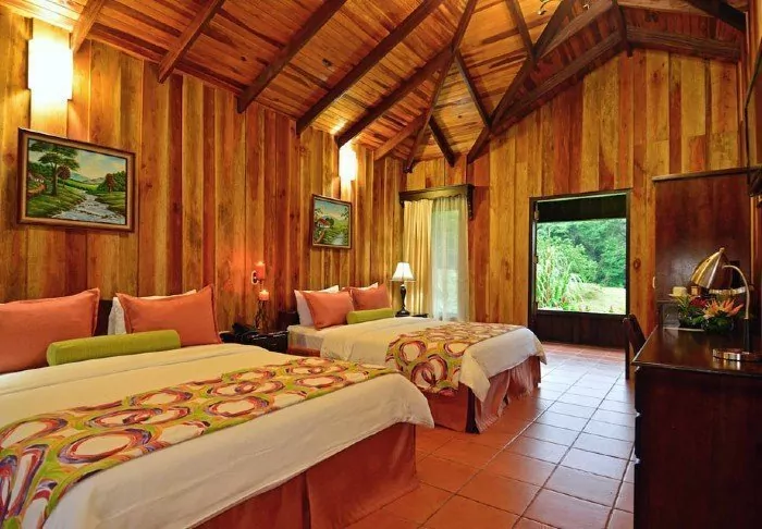 Alle 60 kamers van de lodge zijn geïnspireerd op de originele stijl van de eerste berghutten in Monteverde, en zijn ingericht met houten meubels en warme kleuren. Ze hebben kabel-tv, een telefoon, een kluis, een koffiezetapparaat en eigen toilet en douche. Buiten de kamers bevindt zich een gedeelde veranda, waar je kunt zitten en ontspannen in een van de stoelen.