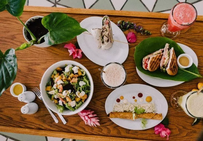 Het resort heeft een eigen restaurant, waar een combinatie van lokale en internationale gerechten wordt geserveerd, die worden bereid met ingrediënten die grotendeels in de eigen keukentuin worden verbouwd.