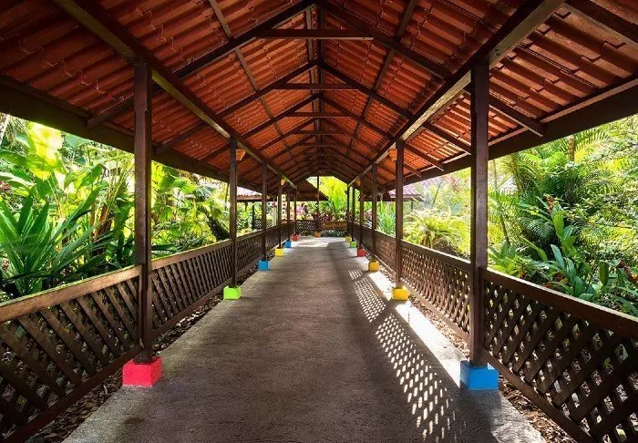 Er heerst hier een ontspannen sfeer, waardoor je je gegarandeerd één voelt met de natuur. Het hotel is omgeven door weelderig regenwoud en heeft een gezellig zwembadgedeelte waar je kunt genieten van een verfrissende duik of een koud drankje op een ligstoel tussen palmbomen en exotische bloemen. Het is een klein hotel met slechts 17 kamers, die allemaal airconditioning, een plafondventilator, een minibar, een kluis, een haardroger, een tv, koffie- en theefaciliteiten en een eigen badkamer hebben.