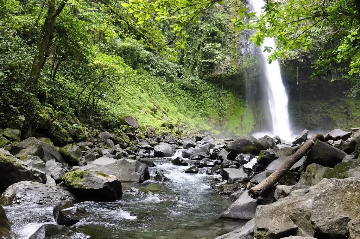Je kunt ook een taxi nemen naar de prachtige waterval La Fortuna, aan de voet van de Chato-vulkaan. De waterval ontspringt in de rivier de Tenorio, die door de Arenal-bergketen en het regenwoud stroomt en stort vervolgens 70 meter omlaag in een lagune. Het is ongeveer 20 minuten lopen van de parkeerplaats door het tropische bos omlaag naar de waterval.