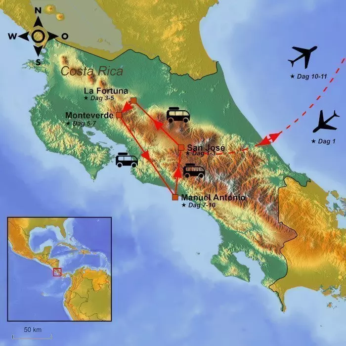 Vandaag verlaat je Europa, op weg naar de hoofdstad van Costa Rica, San José, met tussenlanding(en) onderweg. Je wordt op de luchthaven opgewacht door een chauffeur, die je naar je hotel brengt. De rit vanaf de luchthaven duurt ongeveer 45 minuten. De rest van de avond kan je besteden zoals je wilt.