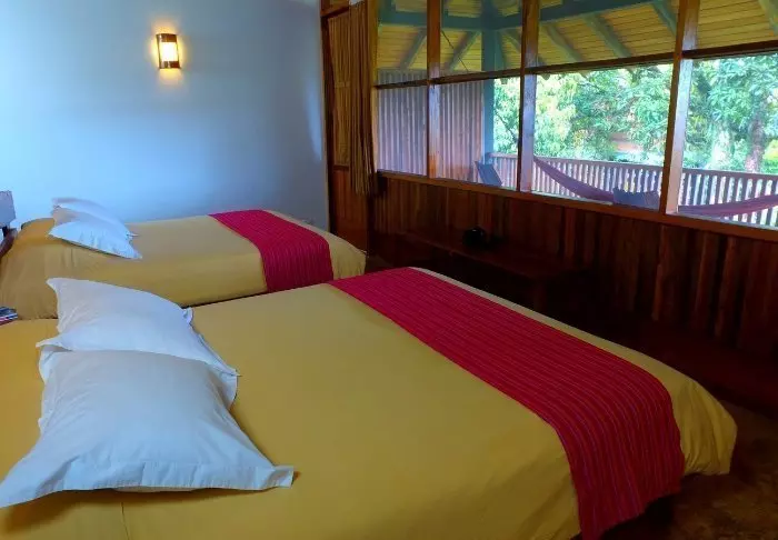 De lodge heeft 76 ruime, rustieke kamers, die allemaal een ventilator, een eigen badkamer en een privéterras met een hangmat hebben waar je kunt ontspannen en genieten van de weelderige omgeving. Er zitten horren op de ramen, dus je krijgt een natuurlijk briesje in de kamer, terwijl je luistert naar de geluiden van de jungle en de stromende rivier. ‘s Avonds raden we echter aan om oordopjes te gebruiken, omdat de geluiden van het regenwoud luider kunnen zijn dan je zou verwachten.