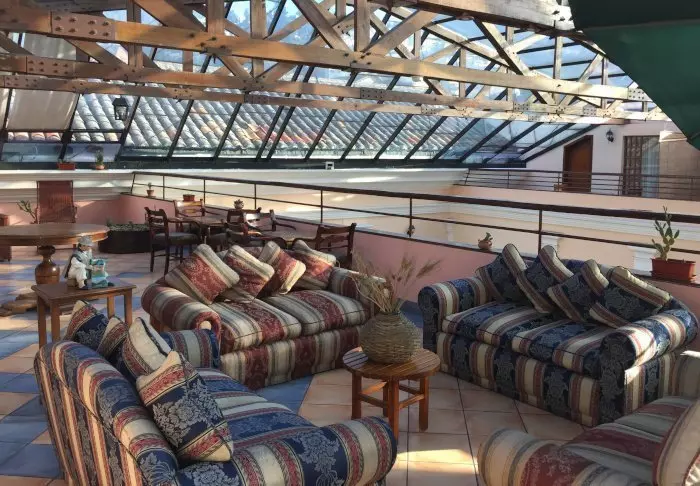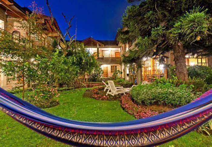 Na een interessante dag in Quito kun je ontspannen in het kleine loungegedeelte van het hotel of op het buitenterras waar je kunt kijken hoe de zon ondergaat achter de bergen.