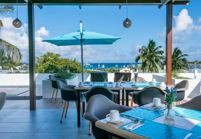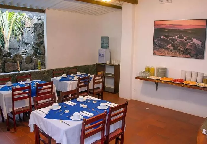 Je ontbijt (inbegrepen) wordt geserveerd als buffet in het restaurant van het hotel. Vanwege het aangename klimaat van het eiland kunt je ervoor kiezen of je binnen of buiten wilt zitten. Het restaurant is ook geopend voor lunch en diner en serveert heerlijke Ecuadoriaanse gerechten.