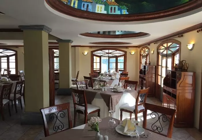 Het restaurant serveert heerlijke plaatselijke en internationale gerechten in een aangename omgeving.