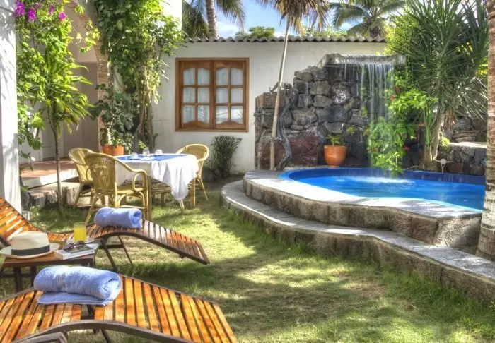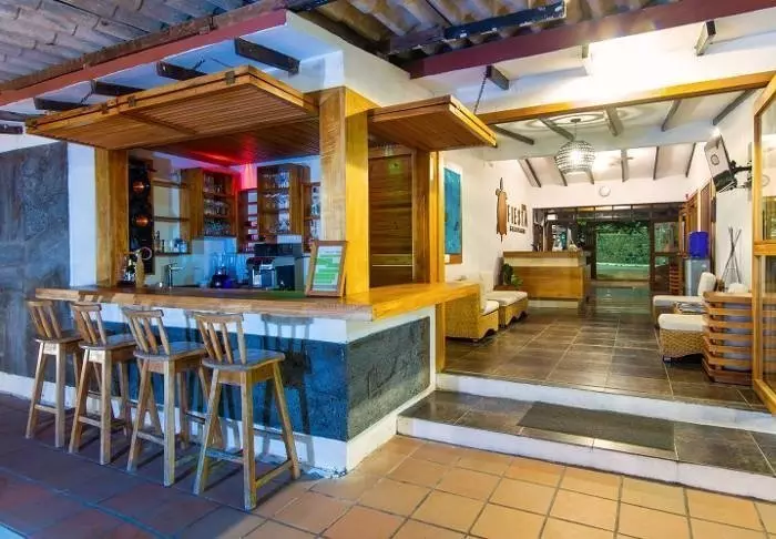 Het hotel heeft vier verdiepingen (geen lift) en heeft slechts 19 kamers rond een binnenplaats met een klein zoutwaterzwembad, waar je kunt genieten van een duik na een dag vol avontuur op het eiland.