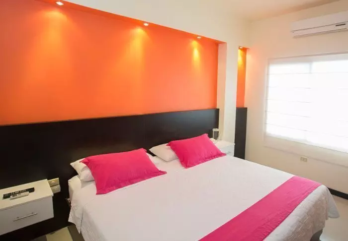 Het hotel heeft twee verdiepingen en de kamers liggen rond het grote zwembad en de weelderige tuin. De kamers zijn relatief klein en eenvoudig ingericht, maar ze hebben alles wat je nodig hebt met een comfortabel bed om in te slapen, airconditioning, een kluisje, een koelkast en een eigen badkamer.