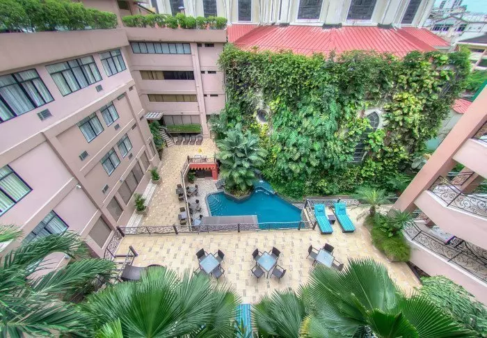 Op de binnenplaats van het hotel is er een klein zwembad waar je kunt genieten van een verfrissende duik en kunt ontspannen op een ligstoel. Je vindt hier ook de zwembadbar, waar je koele drankjes en lichte maaltijden kunt bestellen.