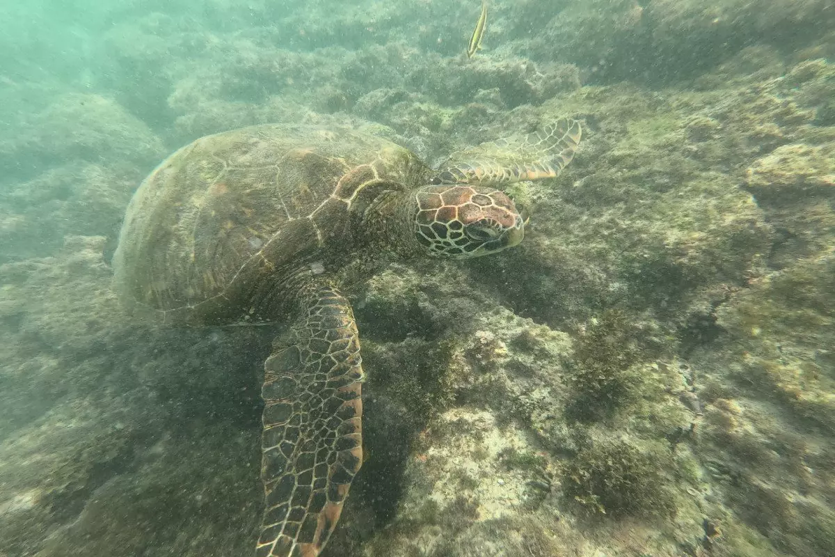 Je wordt eerst naar het noordelijke uiteinde van Santa Cruzl gebracht, waar de boot op je wacht. Vanaf hier vaar je ongeveer 15 minuten met de boot voordat je stopt bij Punta Carrion, een fantastische plek om te snorkelen. Met wat geluk kun je hier zeeleeuwen, roggen en witpuntrifhaaien tegenkomen. Vervolgens reis je verder naar South Plaza.