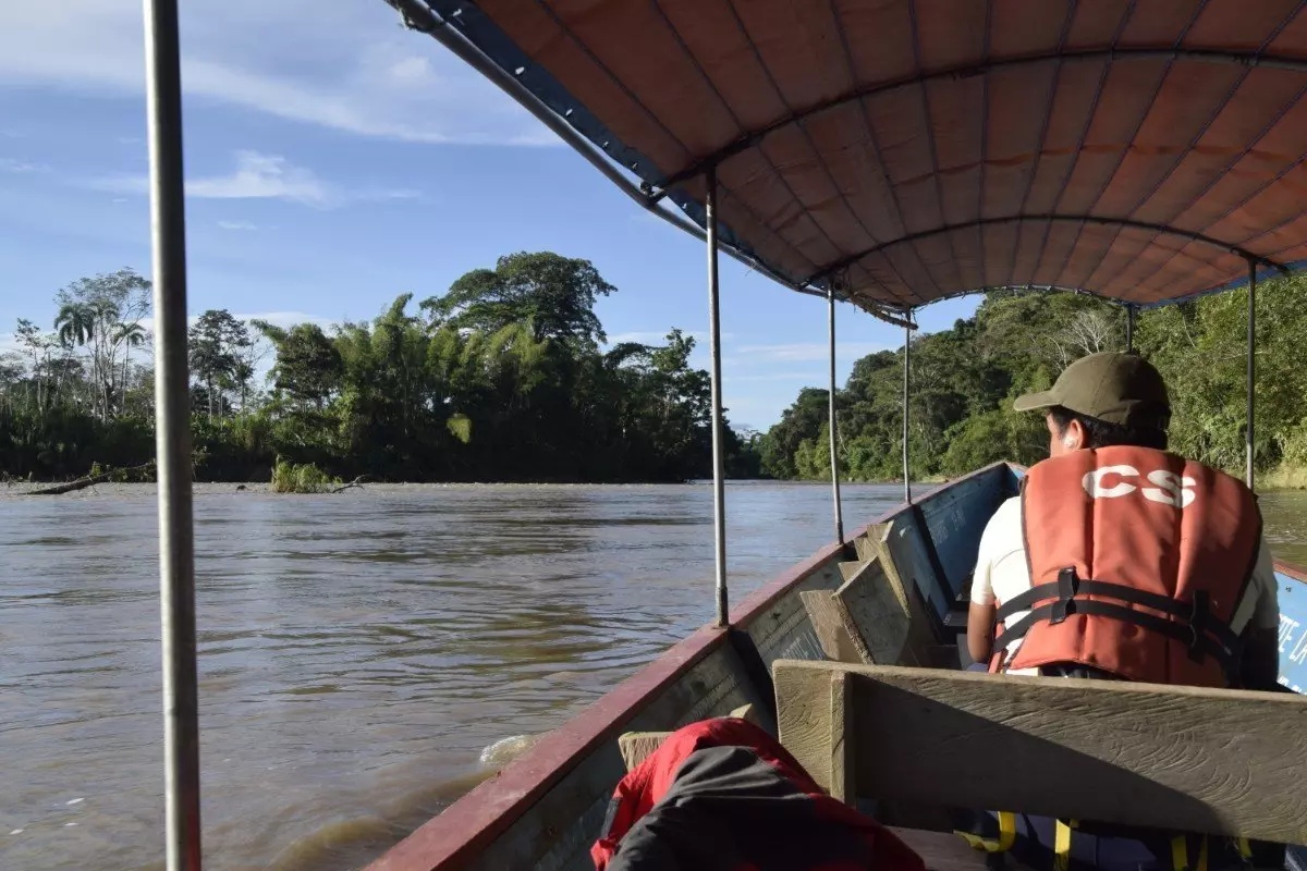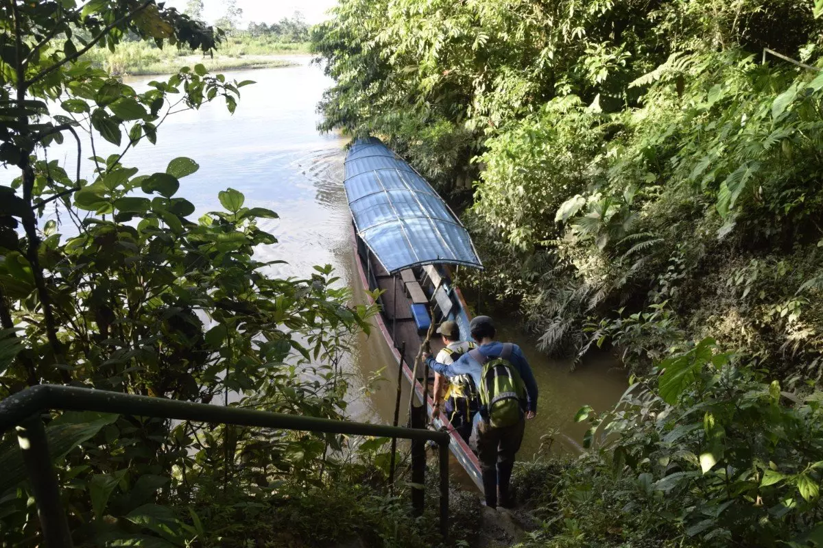 De weg eindigt letterlijk in de Napo-rivier, waar een gemotoriseerde kano wacht om je de laatste stap van de reis naar je jungle-lodge brengt, die zich op ongeveer 40 km van Tena bevindt, omgeven door weelderige jungle. De boottocht duurt ongeveer 15 minuten.