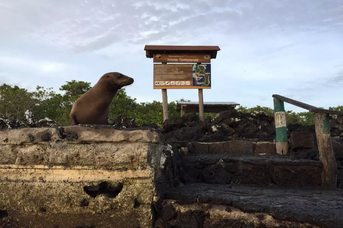 Als je nog niet naar de pier in Puerto Ayora bent geweest, wandel daar dan naartoe en bekijk alle rifhaaien, roggen en zeeleeuwen in het ondiepe water en de kleurrijke krabben en zeeleguanen die op de rotsen leven.