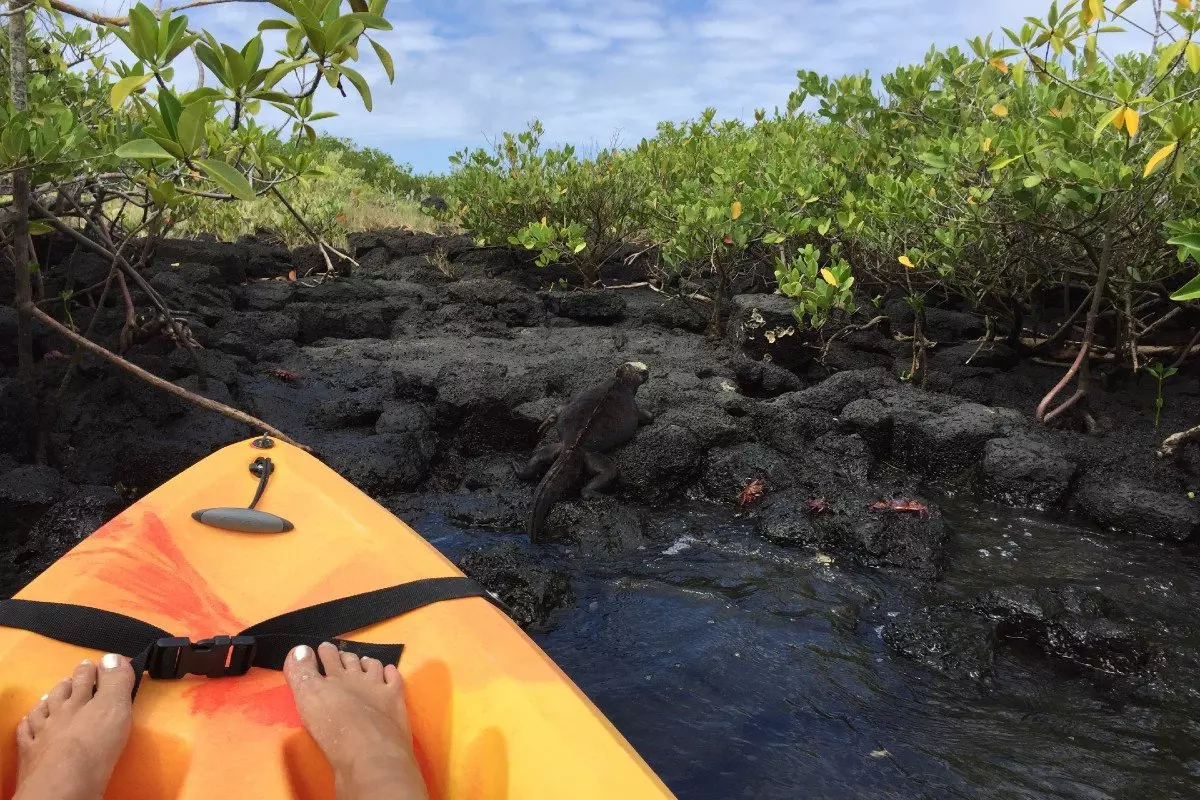 We raden je ook ten zeerste aan om je rugzak in te pakken, je wandelschoenen aan te trekken en de dag door te brengen op het prachtige strand, Tortuga Bay. Een geasfalteerd pad leidt naar het strand, dat begint in het zuidwestelijke deel van Puerto Ayora – een wandeling van ongeveer 45 minuten heen en terug. In Tortuga Bay kun je zonnebaden, surfen of gewoon alle zeeleguanen en pelikanen observeren die er leven. De stroming kan erg sterk zijn, dus als je wilt zwemmen in rustig water, moet je doorlopen naar het einde van het strand (ongeveer 2,5 km), waar het pittoreske Playa Mansa-strand ligt in een kleine lagune omgeven door mangrovebos.