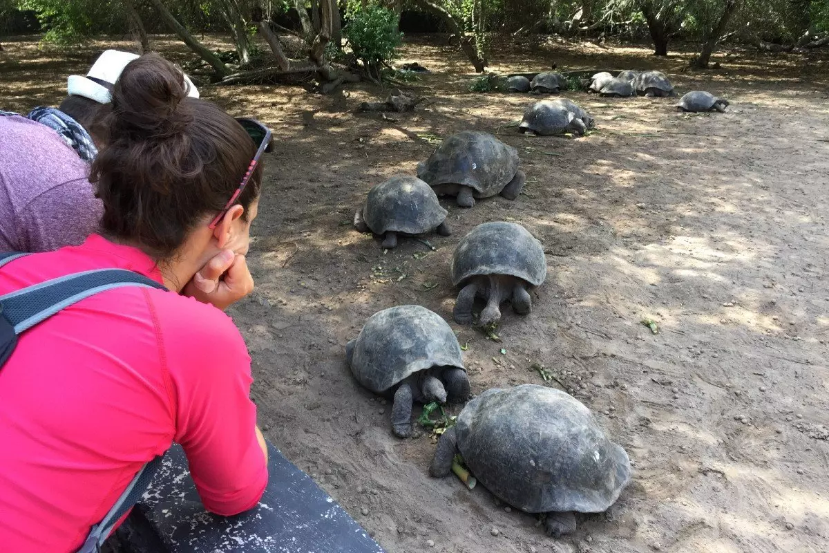 Na een korte wandeling rond de gaten ga je naar de ranch Hacienda Primicias, waar je je eerste geweldige ontmoeting met de dieren zult hebben. Hier woont ‘s werelds grootste schildpad, de Galapagos-schildpad, in het wild. Het is een geweldige ervaring om dicht bij de enorme dieren te komen, die tot 250 kg kunnen wegen en meer dan 100 jaar oud kunnen worden. Je geniet van je lunch (inbegrepen) in de exotische omgeving van de ranch.