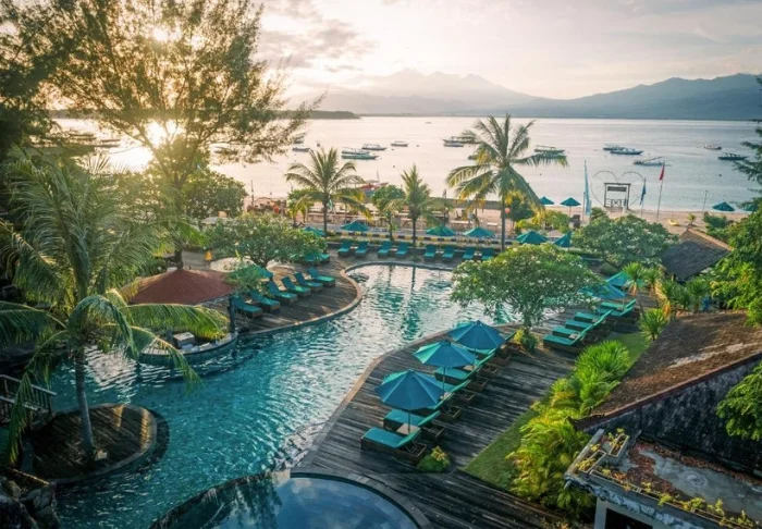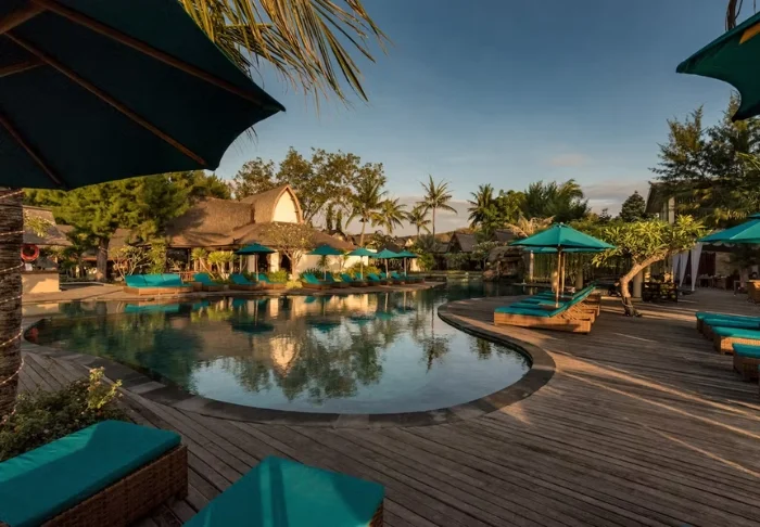 In de tuin vindt u de twee mooie zwembaden van het hotel. Het ene zwembad heeft een bijbehorend kinderbad en kijkt uit op het strand en het naburige eiland Lombok met de berg Rinjani, terwijl het andere voor volwassenen is, meer teruggetrokken gelegen midden in de tropische tuin met palmbomen en plumeria. Beide zwembaden hebben parasols, ligstoelen en een ‘swim-up bar’ ,waar u verkoelende drankjes, vers geperste sappen en vers kokoswater kunt bestellen, geserveerd in een kokosnoot – een absolute must als u op Gili bent!