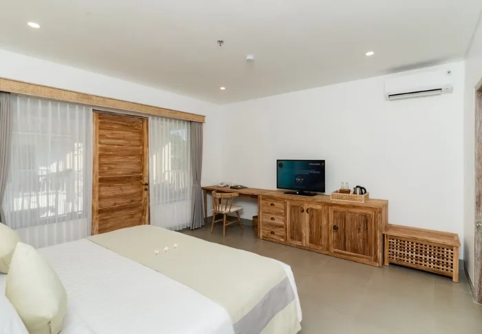 Vila Ombak heeft in totaal 148 ruime en smaakvol ingerichte kamers met klassieke houten meubels en Indonesische kunst. Alle kamers zijn voorzien van wifi, airco, kluisje, minikoelkast, tv, telefoon, gratis flesjes mineraalwater en waterkoker, zodat u de dag kunt beginnen met een kopje koffie of thee op uw eigen balkon of terras. Alle kamers hebben ook een eigen grote badkamer met gratis toiletartikelen en een föhn.