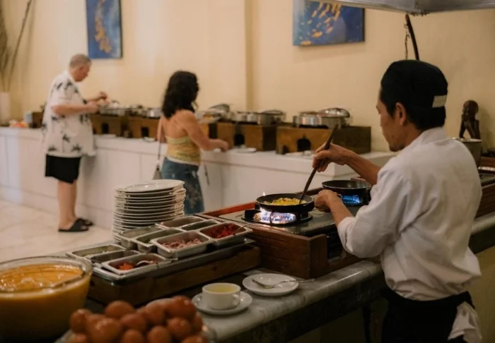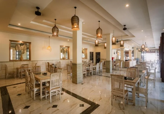 Het hoofdrestaurant van het hotel, Seahorse Restaurant, is geopend van 08.00 tot 23.00 uur. ‘s Ochtends serveert men hier vers fruit, zelfgemaakte yoghurt, vers gebakken brood, eieren en pannenkoeken en voor de lunch en het diner serveert men Indonesische en Zuid-Europese specialiteiten, vis, schaaldieren en diverse gegrilde gerechten.