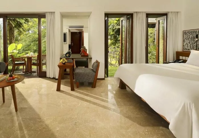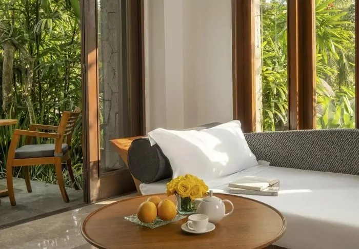 De kamers en villa’s zijn elegant ingericht met een combinatie van Balinese elementen en moderne faciliteiten. Ze zijn ook ruim, licht en uitnodigend. Alle kamers en villa’s hebben een eigen balkon of terras, zodat u achterover kunt leunen en van het adembenemende uitzicht kunt genieten. Bovendien zijn alle noodzakelijke voorzieningen aanwezig voor een comfortabel verblijf in Maya Ubud Resort. Deze omvatten airconditioning, minibar, koffiezetapparaat, theefaciliteiten, kluisje, strijkijzer en strijkplank, grote flatscreen-tv, wifi en een Bluetooth-speaker. In de badkamer vindt u allerlei gratis toiletartikelen, een föhn, badjassen en badslippers.