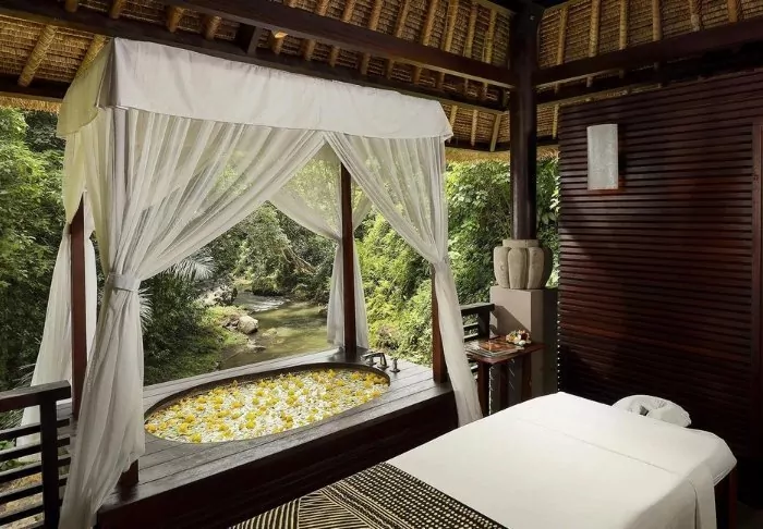 Het resort heeft een eigen gratis pendelbus naar het centrum van Ubud dat ongeveer 5-10 minuten rijden is.