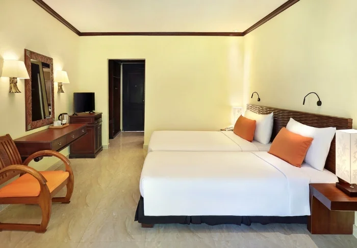 U verblijft in een van de standaard deluxe kamers van het hotel, gelegen in laagbouw die verspreid ligt over het resort. Elke kamer is 40 m² groot en beschikt over een kingsize bed of twee eenpersoonsbedden. Het interieur is minimalistisch, met donker houten meubels, een tegelvloer en zachte tinten die zorgen voor een rustgevende sfeer. Alle kamers zijn uitgerust met airconditioning, TV, wifi, minibar, koffie- en theefaciliteiten en een kluisje. De badkamer heeft een douche en een föhn. Vanaf uw ruime privébalkon of terras kijkt u uit over de tropische tuinen van het resort, volop palmbomen en bloeiende struiken. Sommige kamers hebben een tussendeur; ideaal voor gezinnen die samen reizen.