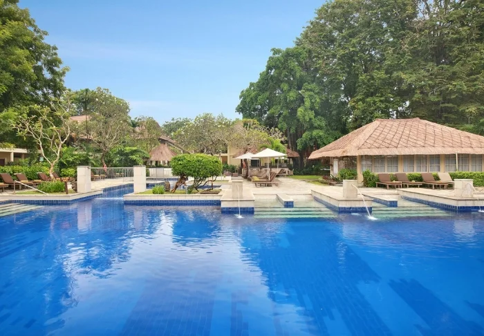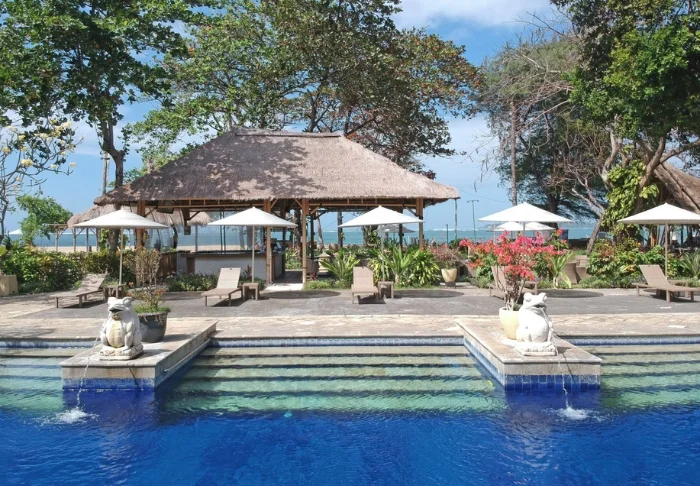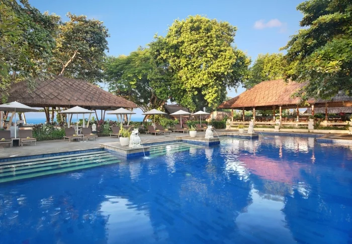 Mercure Bali Sanur Resort ligt direct aan een van de mooiste stranden van Sanur – een vredige, brede strook zand met ondiep water en de welkome schaduw van palmbomen. Het resort is verspreid over vijf hectare weelderige tropische tuinen, gevuld met wuivende palmen en kronkelende paden tussen Balinese gebouwen met traditionele alang-alang daken. Hier geniet u van een ontspannen toevluchtsoord, terwijl u op loopafstand bent van Sanur’s levendige wandelstraat, vol gezellige cafés, winkeltjes en restaurants.