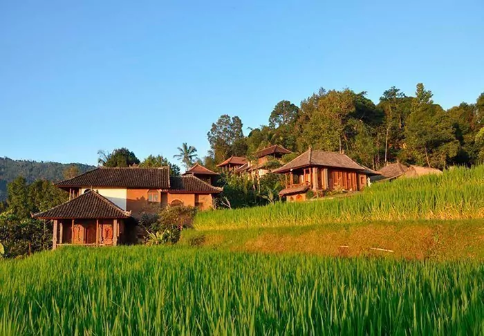 Puri Lumbung Cottages is een milieuvriendelijk hotel gebouwd met natuurlijke materialen en in harmonie met de prachtige omgeving. Het hotel ligt in de frisse berglucht van de hooglanden van Munduk en hier heeft u een ongelooflijk mooi uitzicht op het weelderige landschap met lichtgroene rijstvelden, plantages, jungle en groen begroeide bergtoppen.