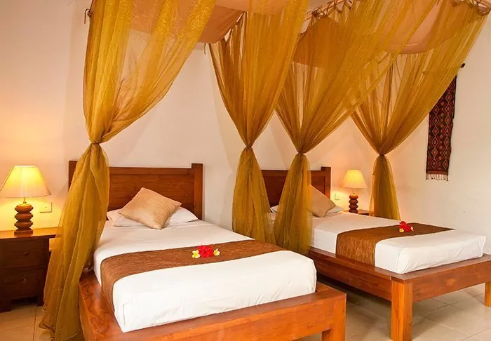 De kamers zijn verdeeld over 12 bungalows, die gebouwd zijn in terrassen tegen de groene hellingen. Alle kamers zijn mooi en eenvoudig ingericht en hebben thee- en koffiefaciliteiten, ventilator, minibar, kluisje, muggennet en gratis wifi. Op uw eigen terras kunt u zich onderdompelen in een goed boek en gewoon genieten van de stilte.