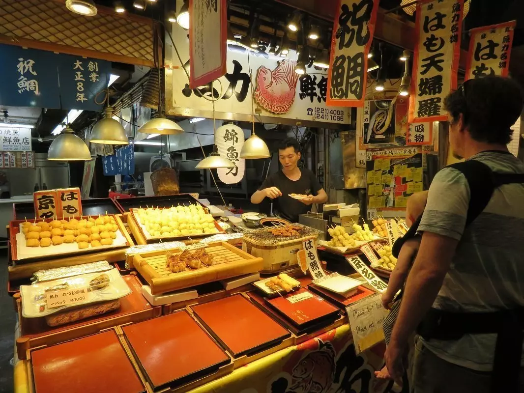 Krijgt u trek? Dan mag een bezoek aan de levendige Nishiki-voedselmarkt niet ontbreken. Proef hier lokale lekkernijen tot culinaire specialiteiten, terwijl u geniet van de bruisende sfeer en het alledaagse leven in Kyoto.