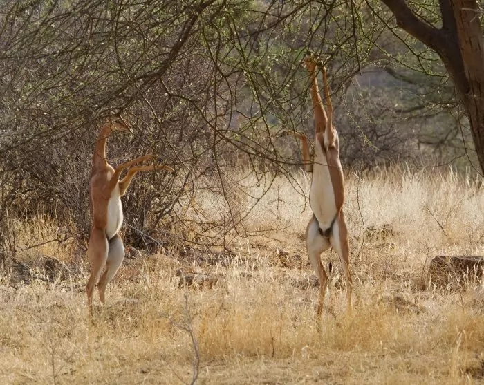 Na met het ene been op het noordelijke halfrond en het andere been op het zuidelijke halfrond te hebben gestaan, rijden we naar de Samburu en passeren onderweg meerdere klimaat- en vegetatiezones: zowel hoogvlakten, berggebieden als droge gebieden. Na de lunch maakt u de eerste echte gamedrive van de reis. Samburu kenmerkt zich door de aanwezigheid van een aantal dieren die alleen hier te vinden zijn: de Grévyzebra, de gerenoek, de enorme gemsbok, de Somalische struisvogel en de netgiraf. Tijdens deze safarireis kunt u zelfs drie verschillende giraffen zien: netgiraffen in de Samburu, Rothschildgiraffen bij Lake Naivasha en Masaigiraffen in de Masai Mara.