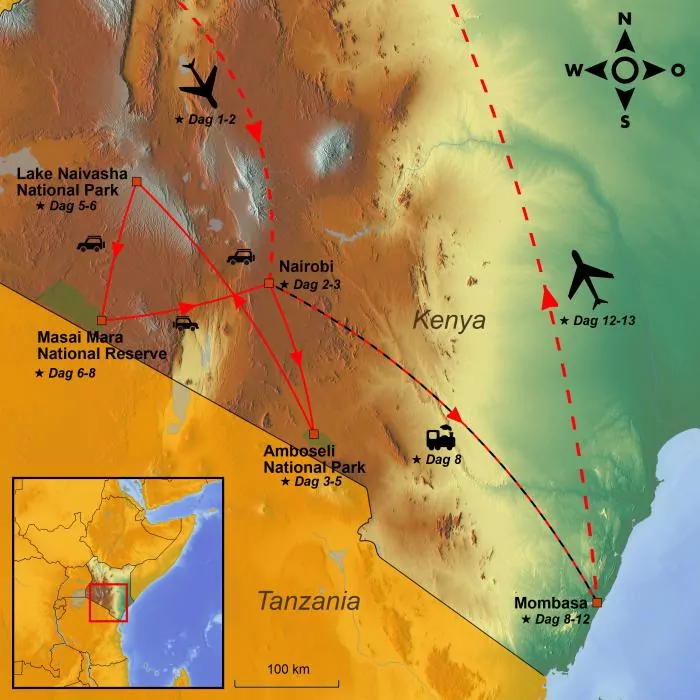 Dit is de klassieke Kenia-rondreis met de grootste hoogtepunten. Van olifanten van Amboseli gaat de tocht verder naar nijlpaarden in Lake Naivasha, en u sluit de reis af met Masai Mara.