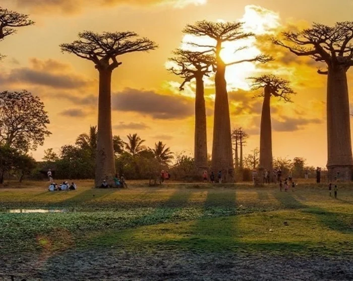 Op de weg terug richting Morondava passeert u opnieuw de indrukwekkende baobabbomen – met een beetje geluk wordt u misschien zelfs getrakteerd op nog een adembenemende zonsondergang.