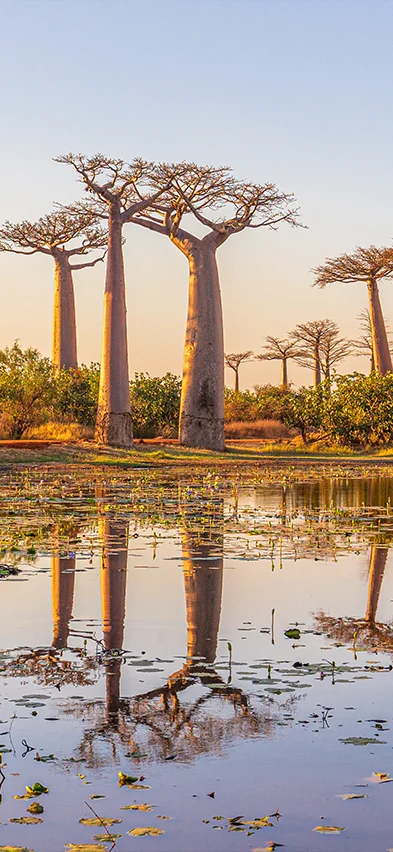 Hier wachten de lemuren in alle soorten op u, met baobabbomen die als kunstwerken oprijzen in het warme avondlicht. U heeft kans de schuwe fossa te zien, evenals kameleons en muislemuren, die allemaal floreren in een van de meest bedreigde, maar fel beschermde bossen ter wereld.