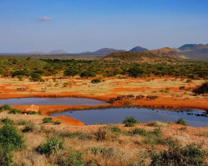 Van een van de kleinste nationale parken in Kenia gaat de tocht vervolgens naar een van de grootste en oudste parken: Tsavo East. Onderweg van Amboseli naar Tsavo East volg je de verharde hoofdweg, maar al snel kom je in Tsavo East en verandert de rit in een wildsafari.