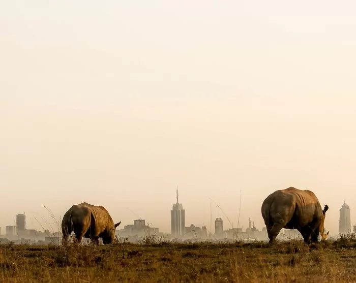 Na het ontbijt vertrekken we uit het hotel en gaan we naar de absoluut grootste attractie van Nairobi: nationaal park Nairobi. Het is een relatief goed bewaard geheim dat er in het park een groot aantal neushoorns is – zowel witte als zwarte – en dat je wel ongelooflijk veel pech moet hebben om geen neushoorn te zien tijdens de safari in het park. De ligging van het nationale park aan de rand van de stad, met uitzicht op de skyline van de stad terwijl je naar de wilde dieren kijkt, voegt een extra dimensie toe. Naast neushoorns kun je een grote verscheidenheid aan andere wilde dieren zien in het park. De enige van de klassieke safaridieren die je er zeker NIET zult tegenkomen is de olifant.