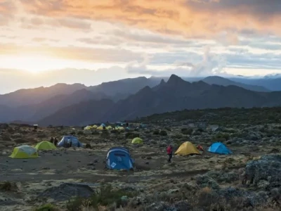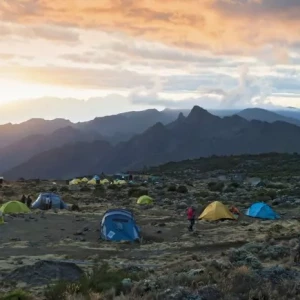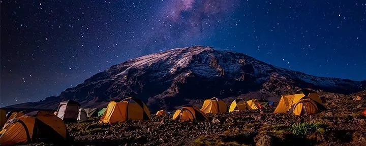 Alle overnachtingen vinden in tenten plaats, met uitzondering van de Marangu-route. Op die route vindt overnachting in primitieve slaapzaalachtige hutten plaats.