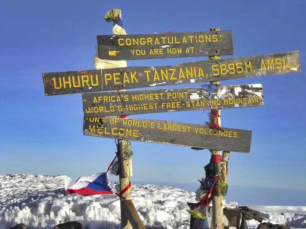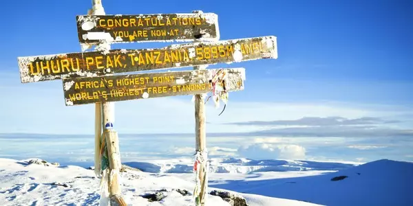 Het eindpunt van al onze tochten op de Kilimanjaro is het hoogste punt, Uhuru Peak.