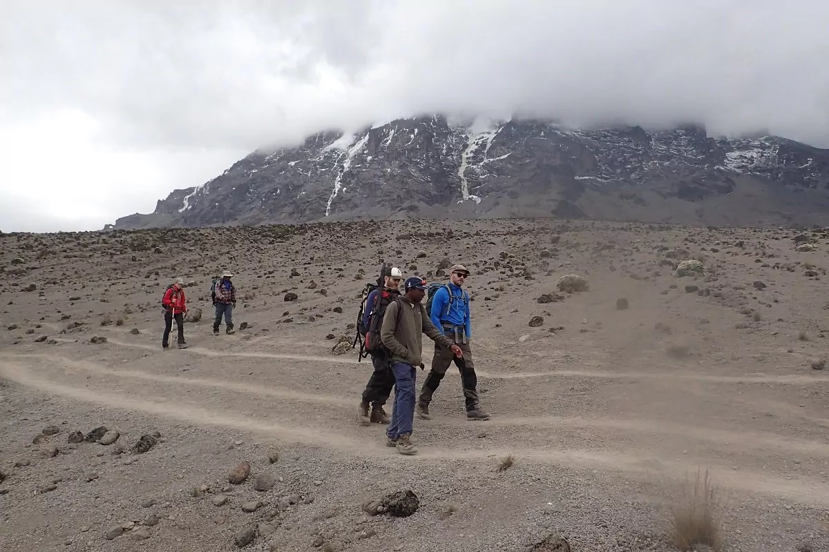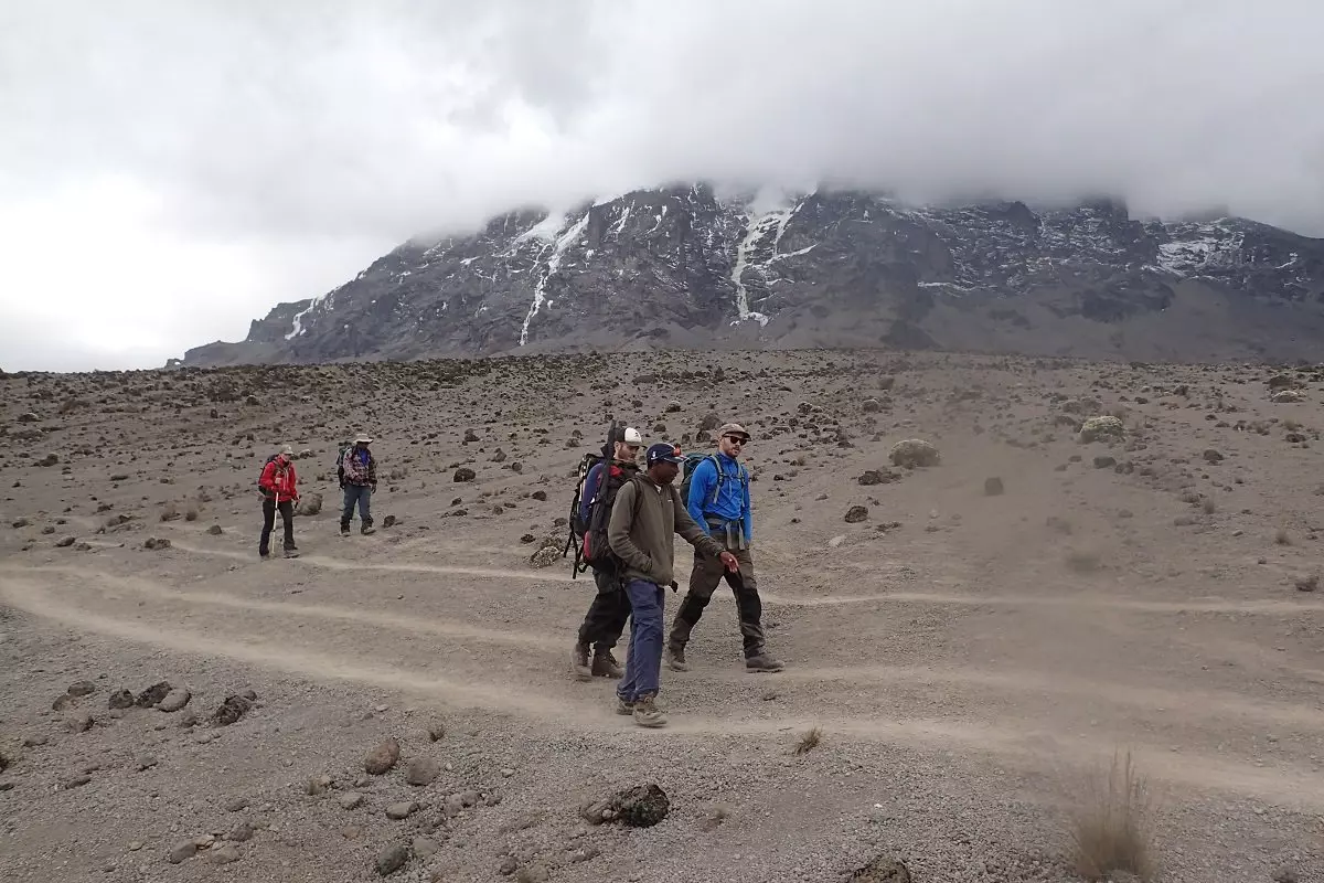 De tocht voert naar beneden door de Karanga Valley en valt samen met de Mweka-route, die u de rest van de weg naar de top van de Kilimanjaro zult volgen. Na een uur lopen bereiken we het Barafu Camp. Het Barafu Camp ligt op een onbeschutte bergrug. De bodem is rotsachtig en het waait er vaak hard. Zorg ervoor dat u het terrein rond het kamp goed heeft verkend voordat het donker wordt. Dan bent u goed voorbereid voor de klim naar de top, die kort na middernacht begint.