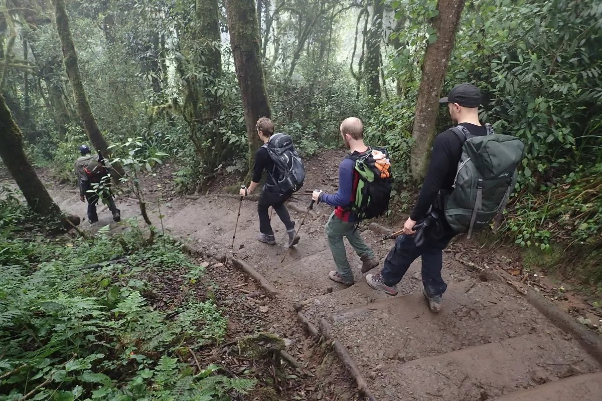 Na het ontbijt verlaat u Moshi en rijdt naar Marangu Gate, de zuidoostelijke ingang van Nationaal Park Kilimanjaro – 45 minuten rijden. Bij aankomst bij Marangu Gate vindt het inchecken en registreren plaats. Dit is ook de plaats waar u uw team van gidsen, koks en dragers ontmoet. Hier begint de beklimming naar de top van de Kilimanjaro. U wandelt over mooie paden door bos en regenwoud waar u eucalyptusbomen, verschillende vogelsoorten en met een beetje geluk de zwart-witte Colobus-apen kunt zien. Op deze lage hoogten kan het nat en modderig zijn, dus het is belangrijk dat u de juiste uitrusting hebt, vooral geschikt schoeisel. Bij aankomst bij Mandara Hut is het tijd voor ontspanning. Als u er zin in heeft en er animo voor is, kunt u samen met de gids en anderen een wandeling naar Maundy Crater maken en de omgeving verkennen, terwijl de koks het eten bereiden.