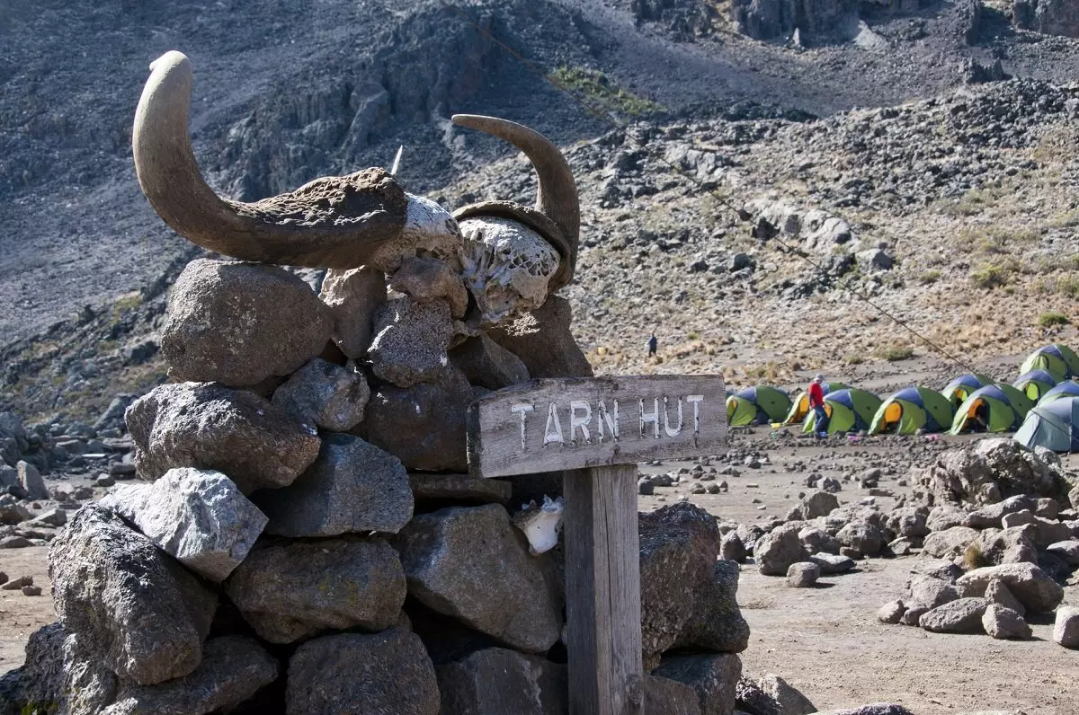 Hoogten: Horombo Huts: 3.690 m boven zeeniveau, Kibo Huts: 4.695 m boven zeeniveau