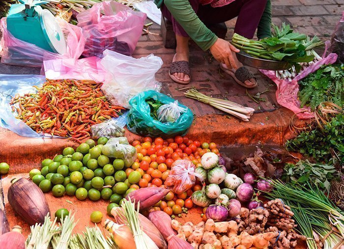 Hierna gaat u verder aar de levendige ochtendmarkt, waar de plaatselijke inwoners proberen af te dingen op de prijs van verse groenten, fruit en vlees.