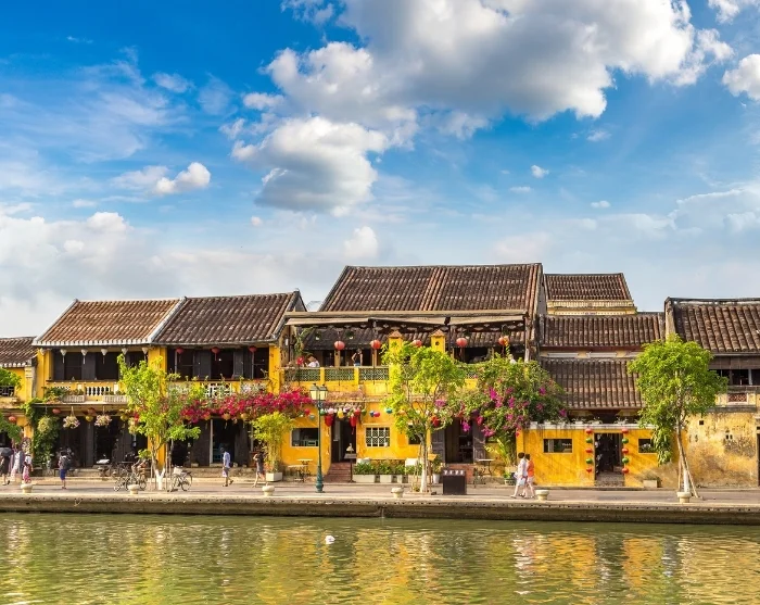 Ver weg van de rivier ontvouwt zich een sfeervol doolhof van smalle straatjes. Hier vindt u een levendige mix van Japanse houten huizen, Chinese vergaderzalen, elegante Franse koloniale panden en iconische koopmanswoningen. Kleurrijke lantaarns hangen als guirlandes over de straten en zorgen, vooral bij het vallen van de avond, voor een betoverende sfeer. Winkeltjes, kraampjes met streetfood, knusse cafés en uitnodigende kleine restaurants rijgen zich als parels aaneen, zodat u op uw gemak kunt ontspannen of nieuwsgierig nieuwe ontdekkingen kunt doen.