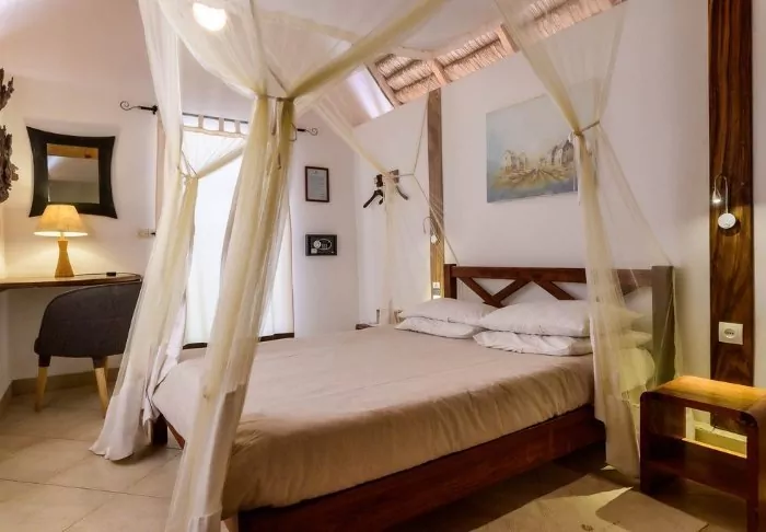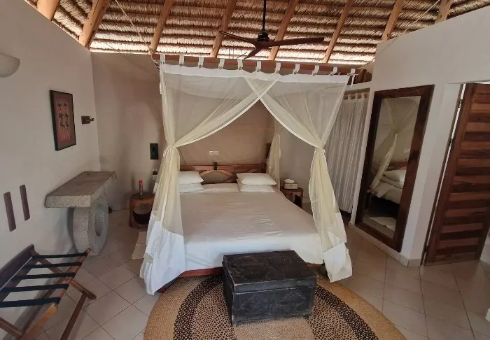 Het eiland is niet helemaal verlaten. Ongeveer 4.000 inwoners wonen hier, en er is een bescheiden selectie aan hotels. Een van de absolute toppers is Tsara Komba.