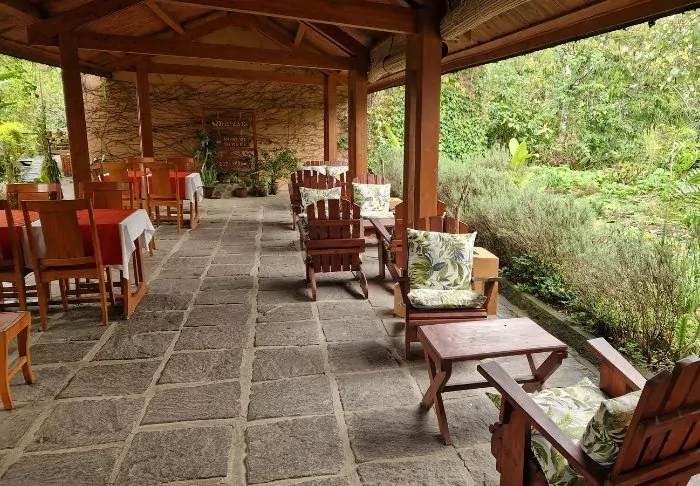 Het restaurant in het hoofdgebouw serveert huisgemaakte gerechten, bereid met veel lokale ingrediënten – typisch Malagassisch met een Europese twist. U kunt er ook voor kiezen om buiten te eten, op de overdekte veranda met uitzicht op de tuinen en het weelderige, groene landschap.