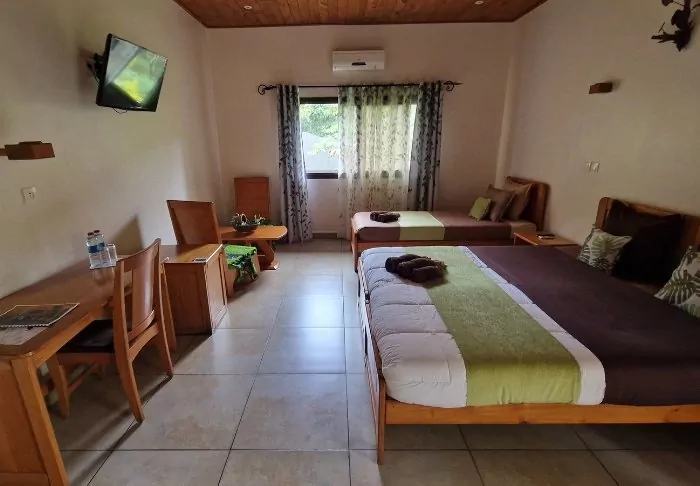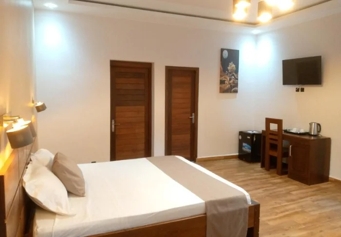 De kamers zijn van een redelijk formaat en zijn voorzien van faciliteiten om thee en koffie te maken, evenals airconditioning en een ventilator. Houd er rekening mee dat de stroom midden in de nacht voor een paar uur wordt uitgeschakeld. Zorg er dus voor dat u uw elektronische apparaten ‘s avonds oplaadt.
