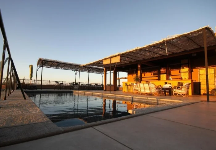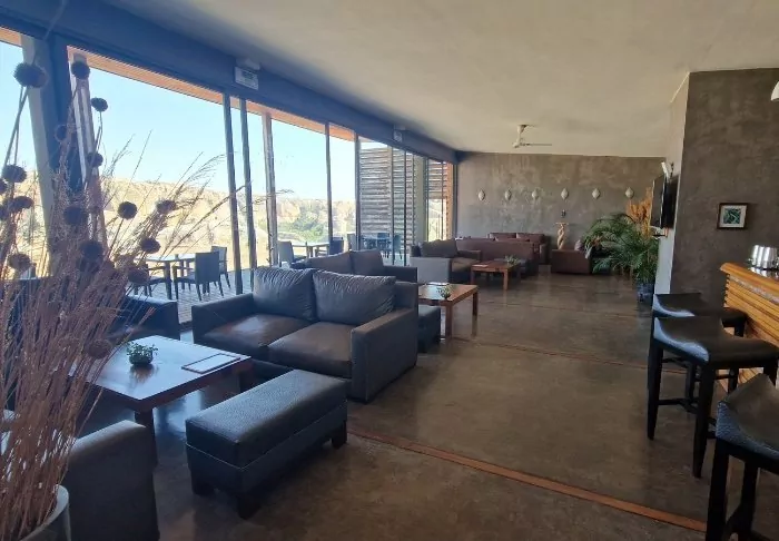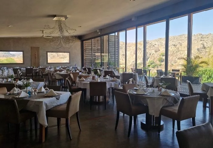 Het hotel heeft 40 kamers en is gebouwd van graniet zodat het zoveel mogelijk opgaat in de omgeving. De kamers zijn gebouwd rond het grote centrale grasveld, met zandstenen rotsen aan één kant. Hier is er licht en frisse lucht in overvloed en het gevoel dicht bij de natuur te zijn.