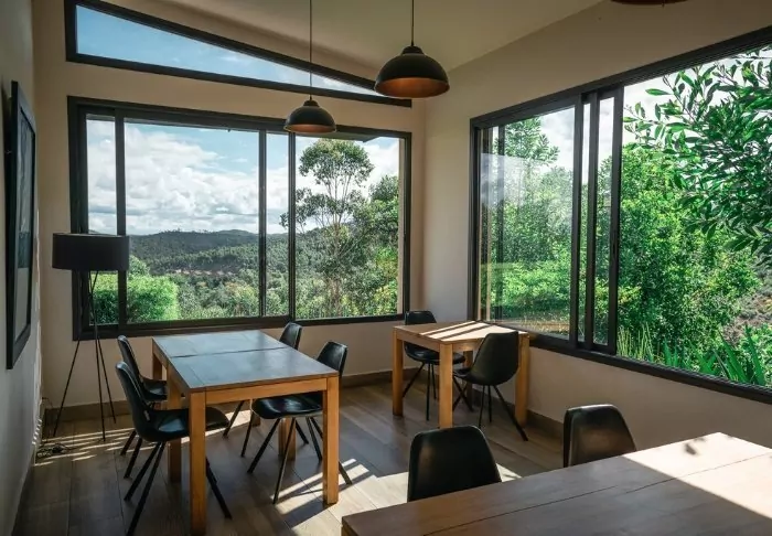 De 23 kamers zijn groot en ingericht met respect voor de omringende natuur. Er zijn houten vloeren en gedempte kleuren, en vanuit de douche heb je uitzicht op het bos om je heen. De badkamers zijn bovendien voorzien van milieuvriendelijke zeep en shampoo, en al het overtollige water wordt verzameld en gefilterd voordat het opnieuw wordt gebruikt om de bloeiende tuin buiten te bewateren.