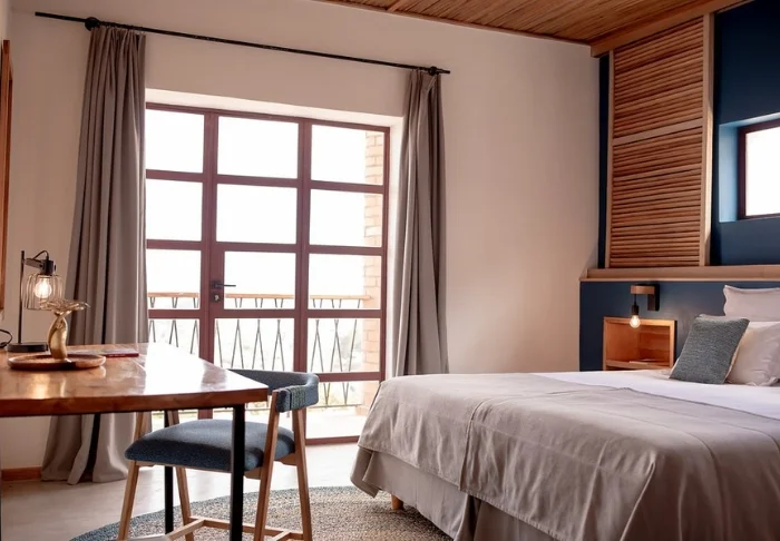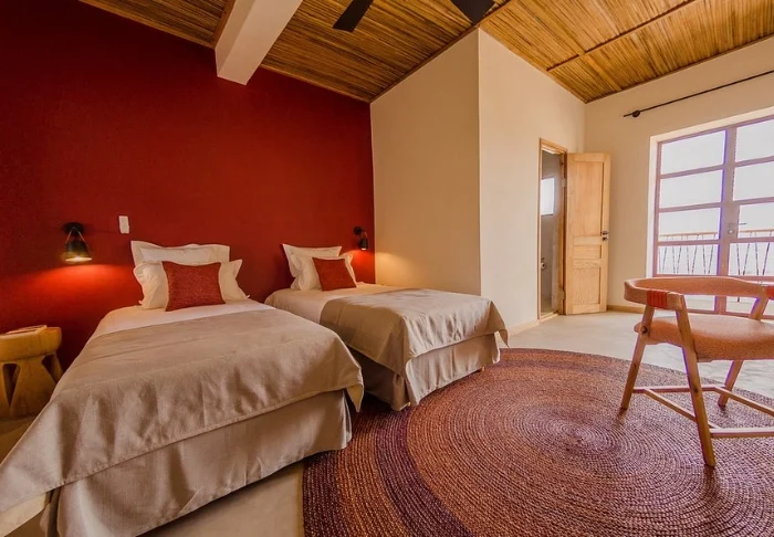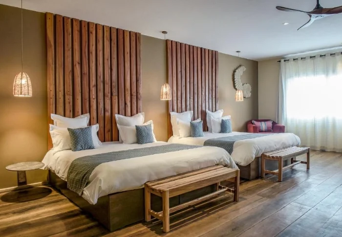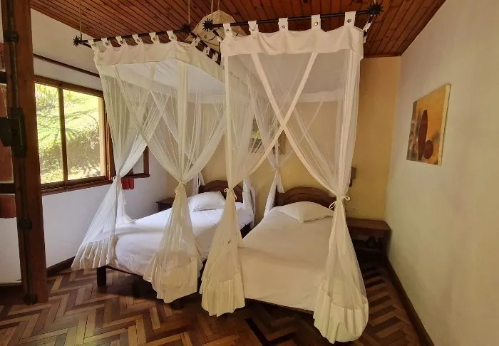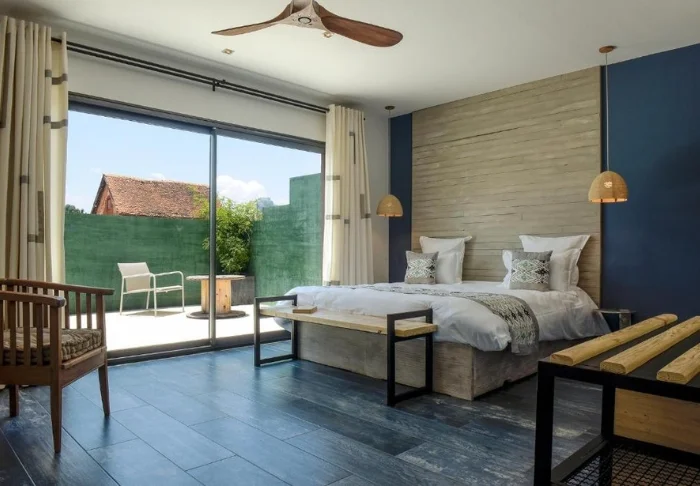 De kamers zijn ruim en ontworpen met een vleugje Scandinavische stijl: licht houten meubels, heldere betonnen vloeren, grote sisal tapijten en kussens en gordijnen in zachte, maar kleurrijke stoffen. Hoewel er geen koelkast of TV op de kamers is, is de wifi overal uitstekend. De nachttemperaturen in Antananarivo zijn over het algemeen goed uit te houden, maar mocht het toch te warm worden, dan is er een plafondventilator.