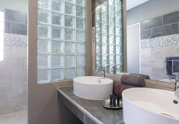 De moderne badkamers zijn ruim opgezet – sommige met bad, andere met een inloopdouche – en altijd voorzien van zachte handdoeken en luxe details.